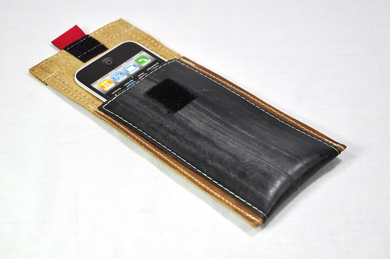 Puhelimen suojakotelo on valmistettu pyöränrenkaan sisäkumista ja tarkoin valitusta korkealaatuisesta italiassa käsitellystä vintagenahasta. Läppä tarrakiinnityksellä. Erittäin kestävä ja ympäristöystävällinen valinta. Soveltuu useimmille älypuhelimille, esim. iPhone 6:lle. Mitat 14 x 9cm.