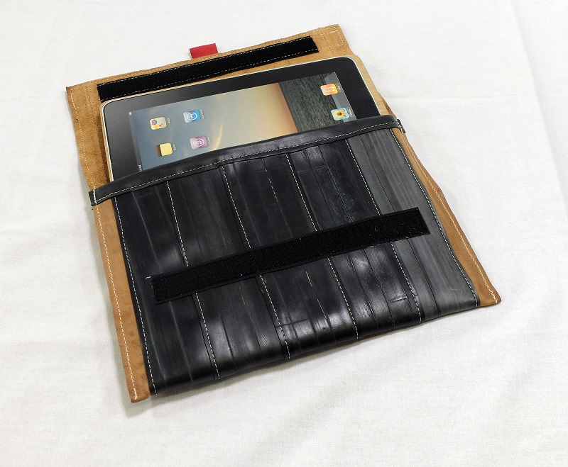 Tablettisuojus on valmistettu polkupyörän renkaan sisäkumista ja laadukkaasta tarkoin valitusta italialaisesta ruskeasta vintagenahasta. Läppä tarrakiinnityksellä. Erittäin kestävä ja ympäristöystävällinen valinta. Toimitetaan tyylikkäässä mustassa laatikossa.