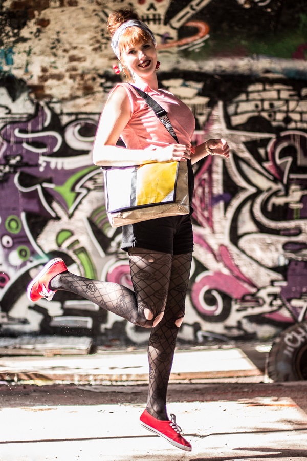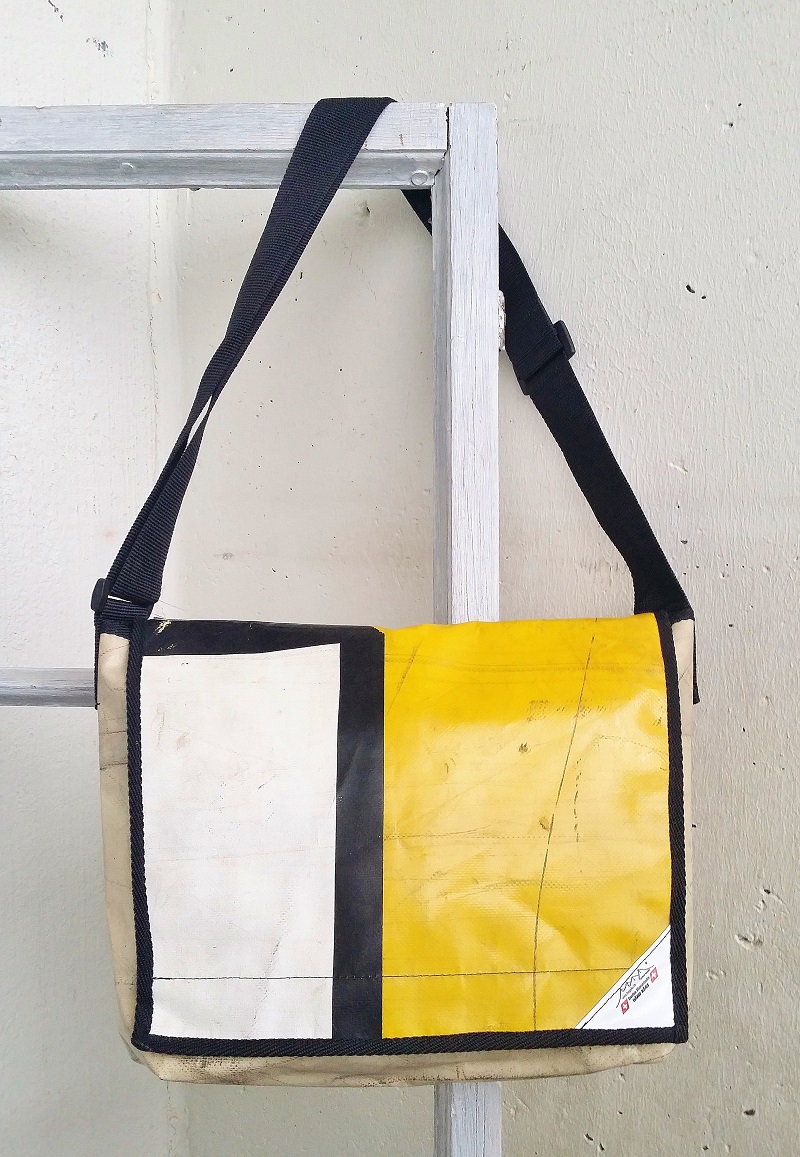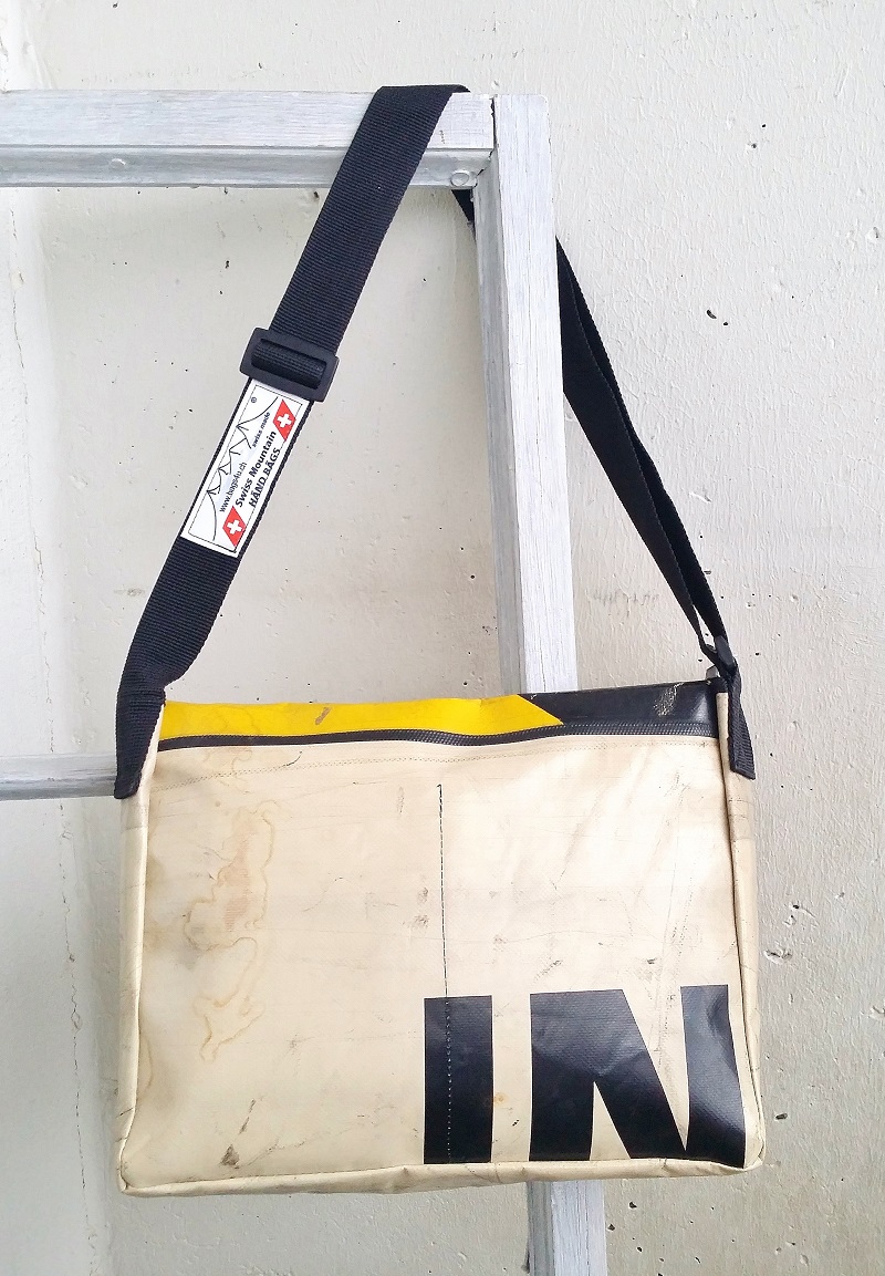 Sveitsissä käsintehdyn laadukkaan ja kestävän laukun valmistuksessa on käytetty rekkapressua. Laukussa on 4 cm leveä säädettävä olkahihna. Takaosassa laukun sisällä kaksiosainen lokero. Laukun läpän alla ulkosivulla puhelintasku sekä toinen pieni tasku ja paikat kynille. Läppä tarrakiinnityksellä.